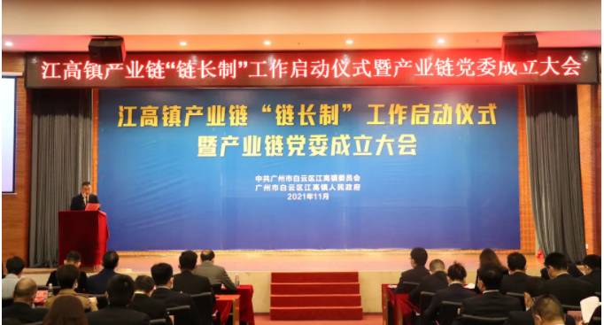 11月24日,白云區(qū)首個(gè)產(chǎn)業(yè)鏈黨組織誕生!江高鎮(zhèn)在白云區(qū)率先啟動(dòng)產(chǎn)業(yè)鏈“鏈長制”工作!江高鎮(zhèn)產(chǎn)業(yè)鏈“鏈長制”工作啟動(dòng)儀式暨產(chǎn)業(yè)鏈黨委成立大會(huì)在白云電器舉辦。會(huì)上,江高鎮(zhèn)為10家鏈主企業(yè)頒發(fā)牌匾,為兩個(gè)產(chǎn)業(yè)鏈黨委揭牌,為8家黨委委員企業(yè)授牌,標(biāo)志著江高鎮(zhèn)產(chǎn)業(yè)鏈“鏈長制”工作正式啟動(dòng)。