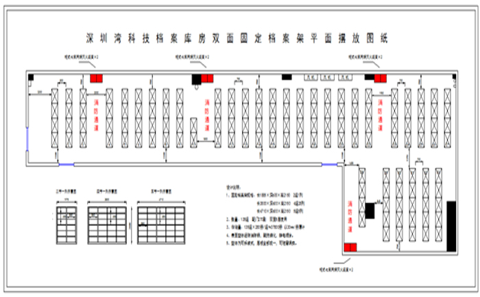 根據(jù)現(xiàn)場(chǎng)測(cè)量的圖紙以及和客戶深入溝通后,我們按照與客戶現(xiàn)場(chǎng)溝通、并且大致確定了檔案庫房的擺放思路。